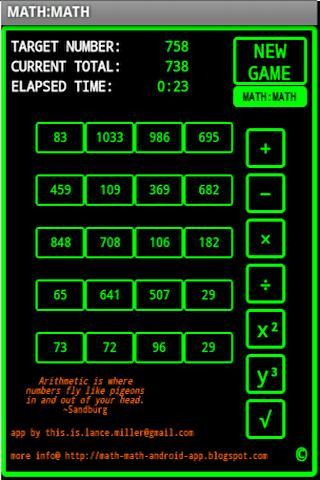 想想一个内置秒表的计算器,有人给您一个随机数,在0到1000之间,然后尝试添加数字,直到您击中他们给您的目标号码为止。这就是MATH:MATH本质上是一种使用计算器的种族。